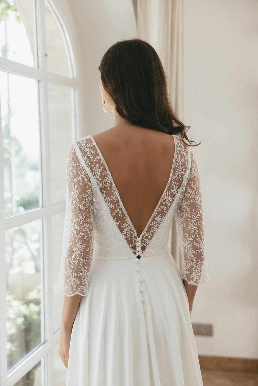 La blouse Garance, moderne et élégante. Elle sera parfaite pour porter par dessus votre robe le jour J ou même pour une tenue civile. Confectionnée avec la même dentelle que notre robe best seller Garance.