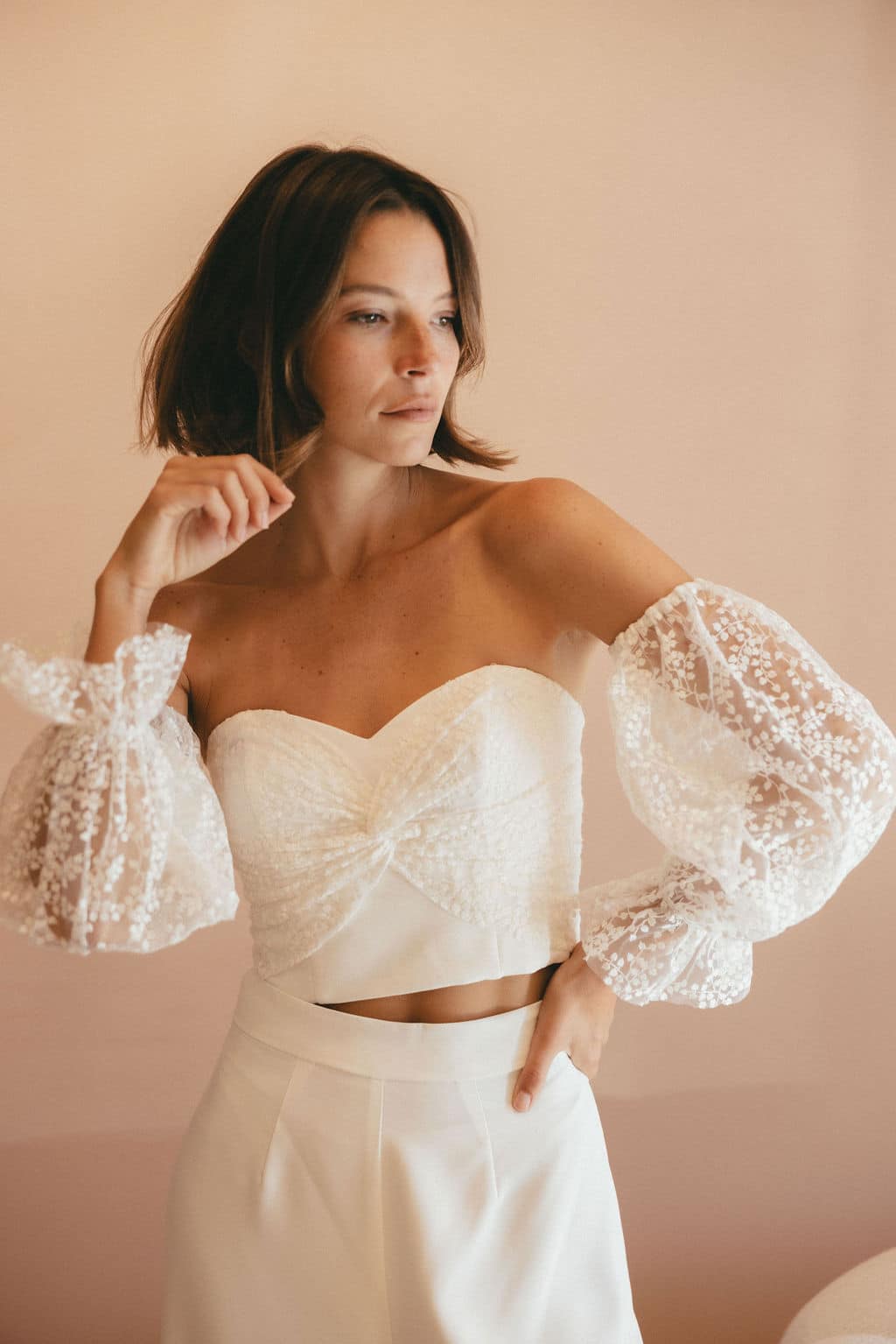Craquez pour la délicatesse de la dentelle Garance associée au glamour du bustier. Parfait avec une jupe ou un pantalon, le bustier Garance s'accorde avec tout type de bas. Le bustier est vendu avec des manches amovibles en dentelle Garance.
