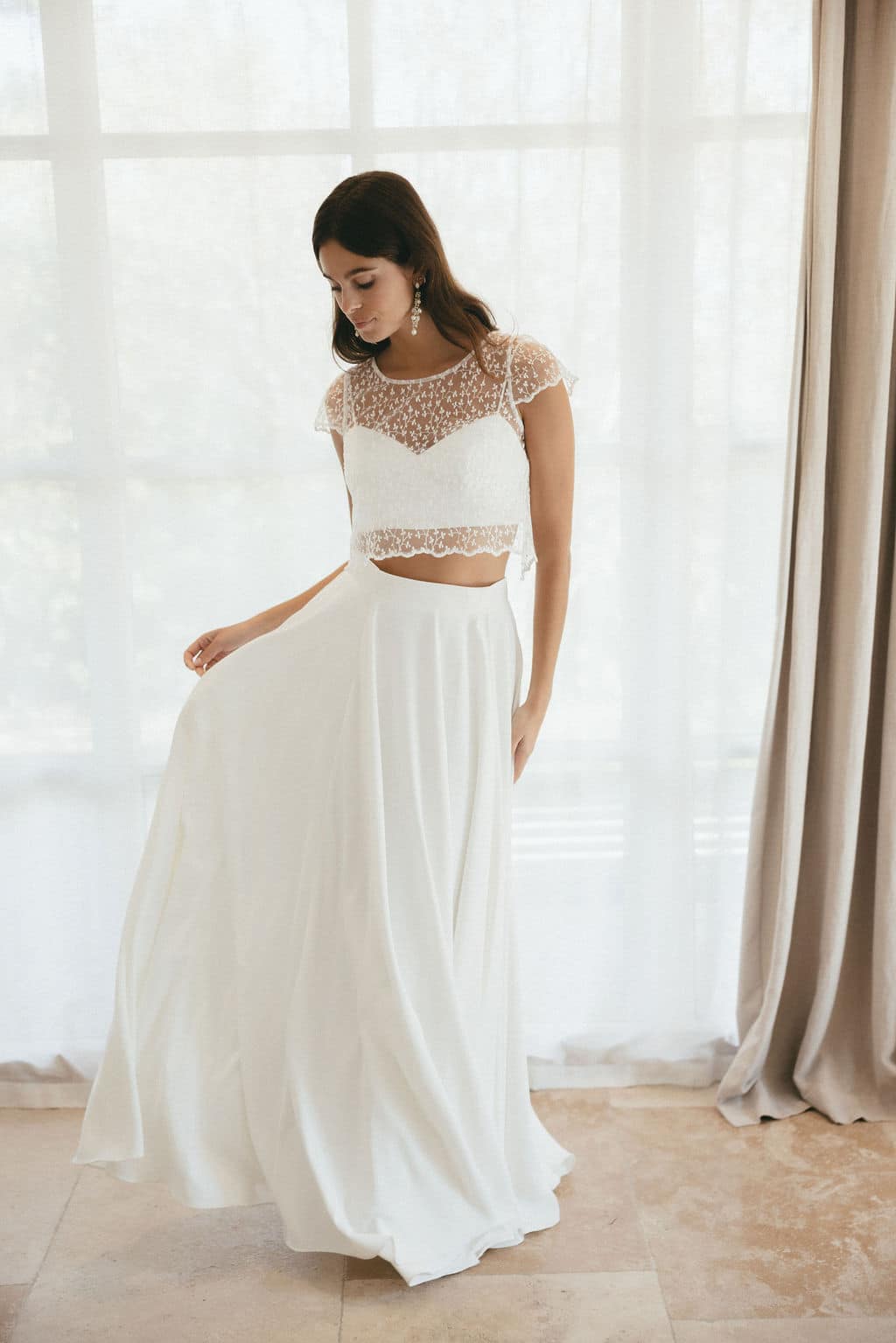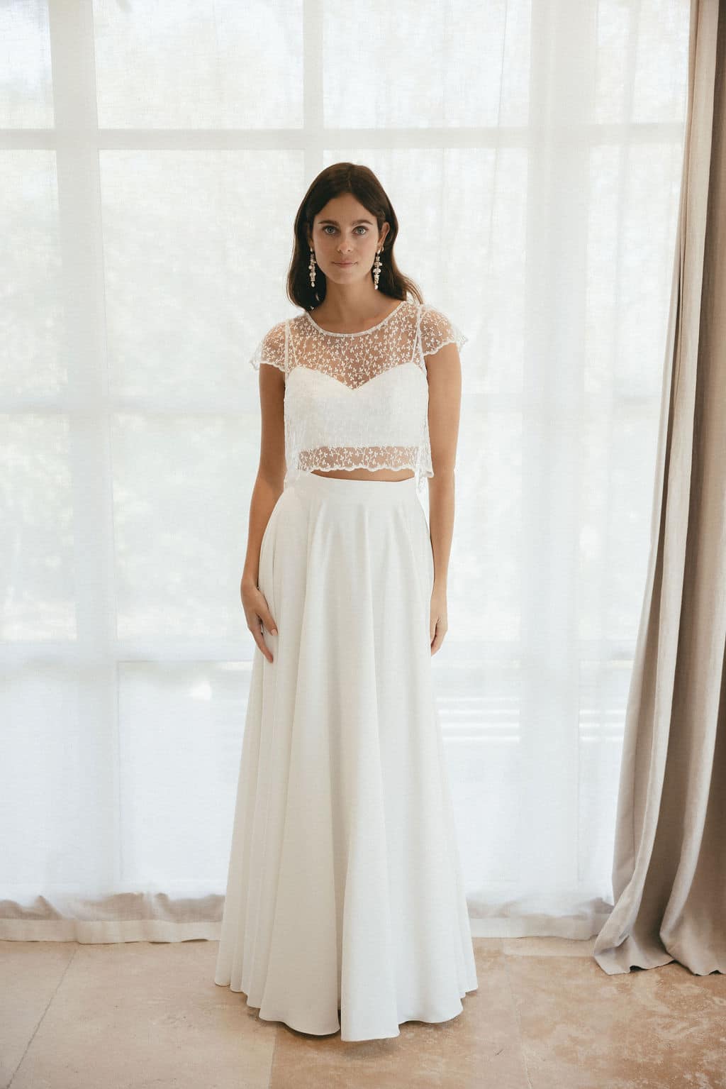 La mannequin porte notre blouse unie qui est vendue séparément.