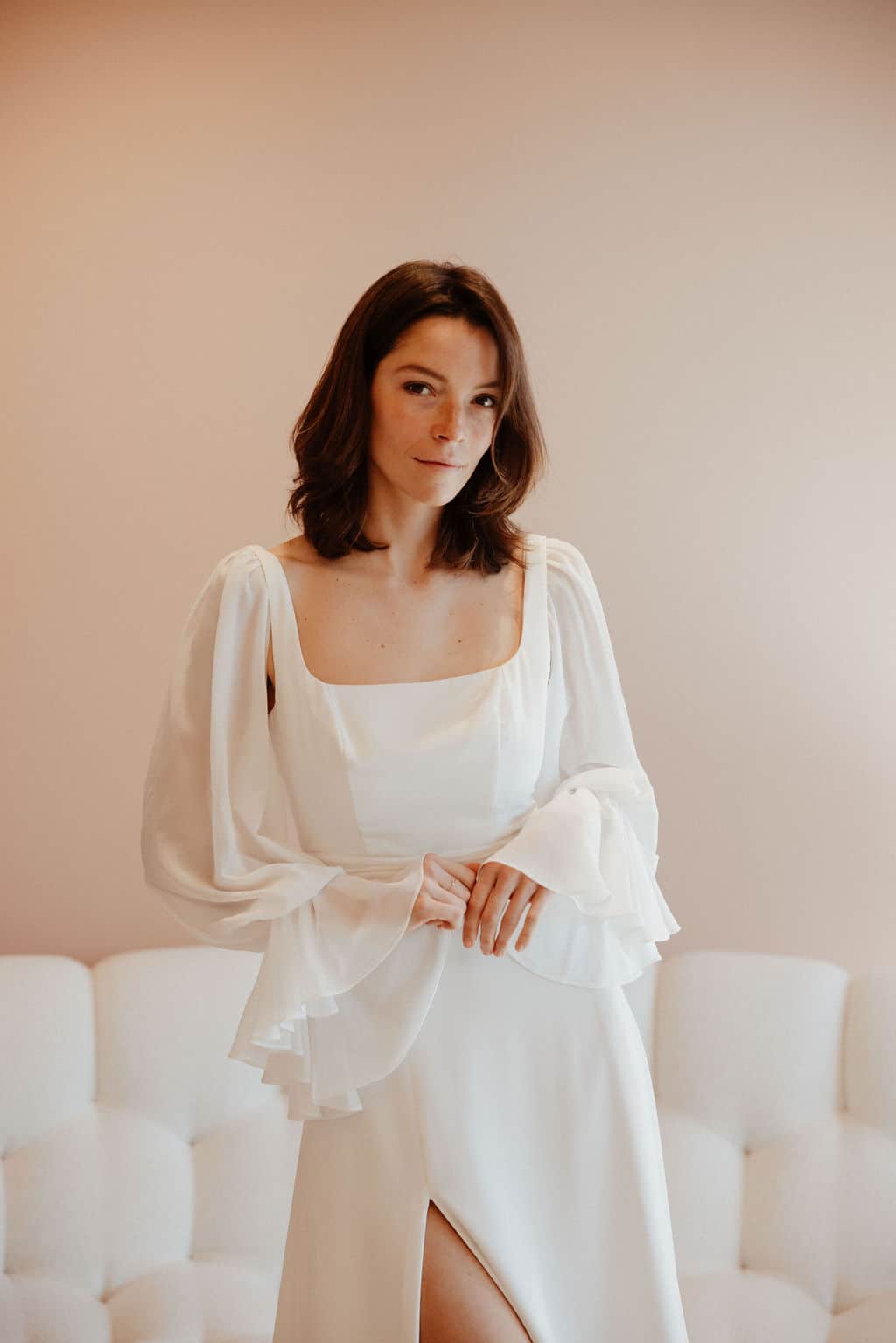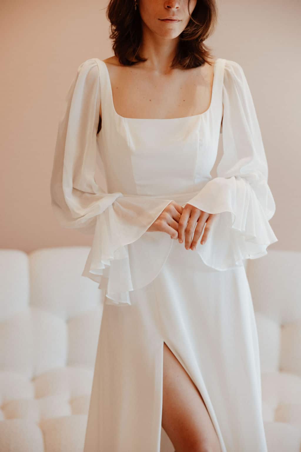Craquez pour ces sublimes manches amovibles en mousseline. Avec leur effet bouffant, elles se resserrent délicatement au niveau du poignet pour créer un effet tulipe sur la main. Elles se marieront parfaitement avec plusieurs de nos créations, notamment la robe Olympe.