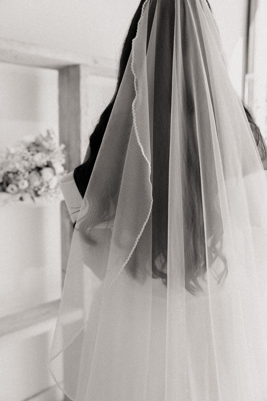 Vous êtes à la recherche du voile de mariée qui complètera parfaitement votre tenue ? Vous allez adorer le voile long (2m) en dentelle finition galon “Lou" !