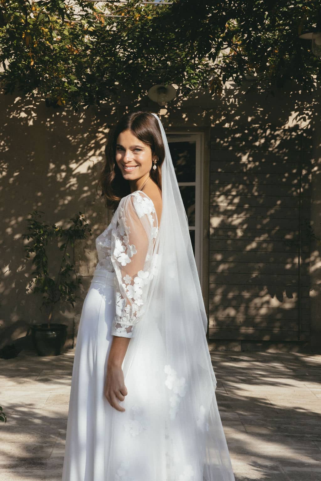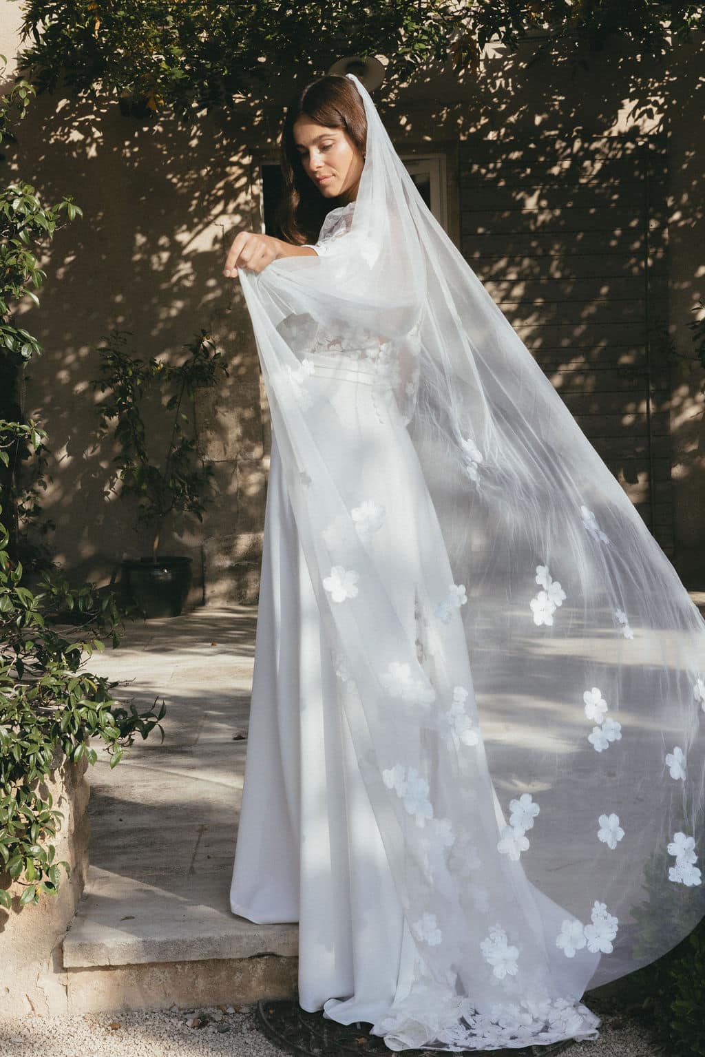 Voile long 2m, avec broderies en dentelle Bertille. Se marie parfaitement avec la robe Bertille.