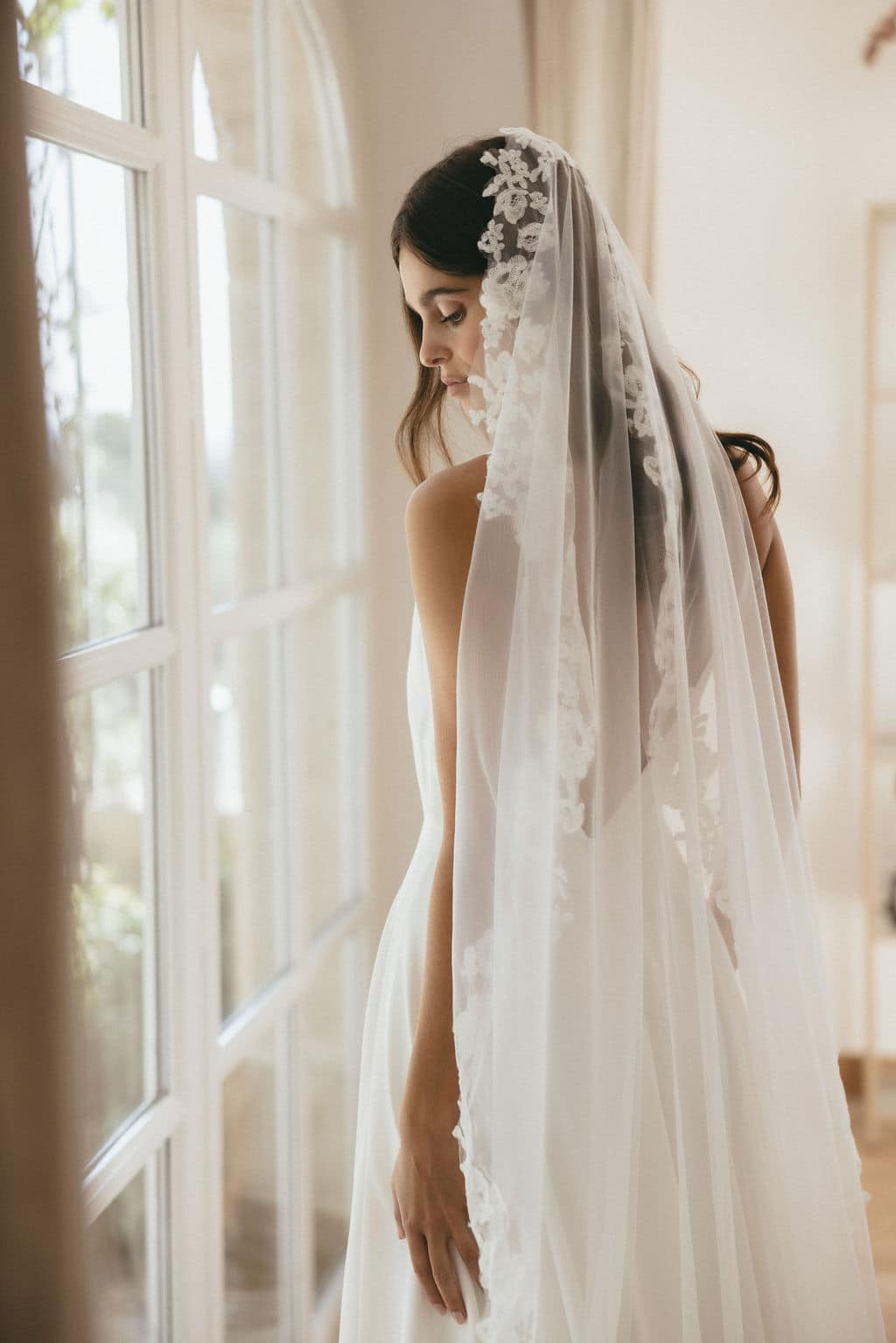 Voile long 2m, avec broderies en dentelleColette. Se marie parfaitement avec la robe Colette.